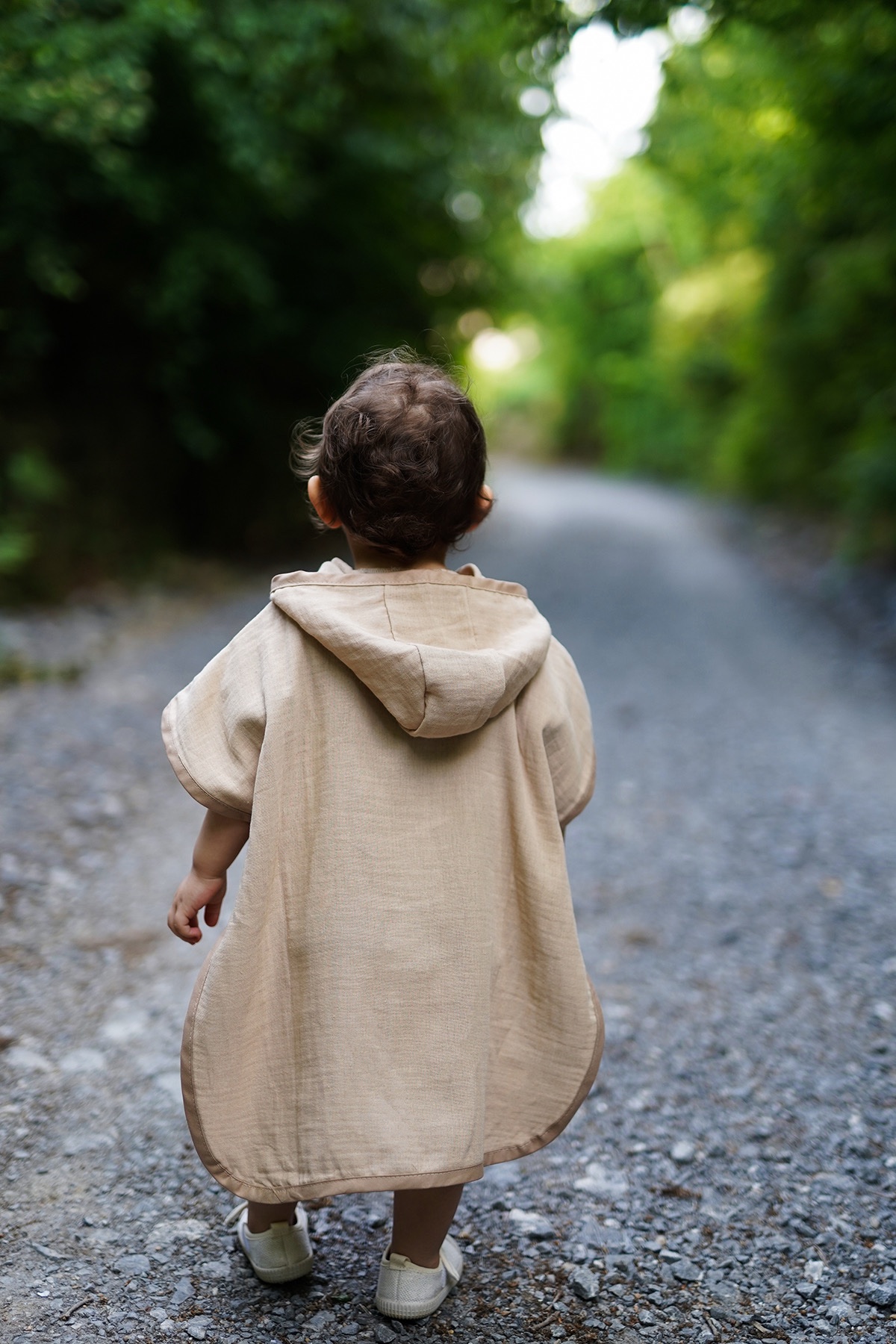 Lagan i udoban pončo Lemon izrađen od 100% organskog pamučnog muslina. Savršen za letnje dane – prozračan, nežan prema koži i jednostavan za oblačenje. Širok kroj omogućava slobodu pokreta, a prirodni materijal pruža udobnost tokom celog dana. Idealan za igru u prirodi, plažu ili šetnje.