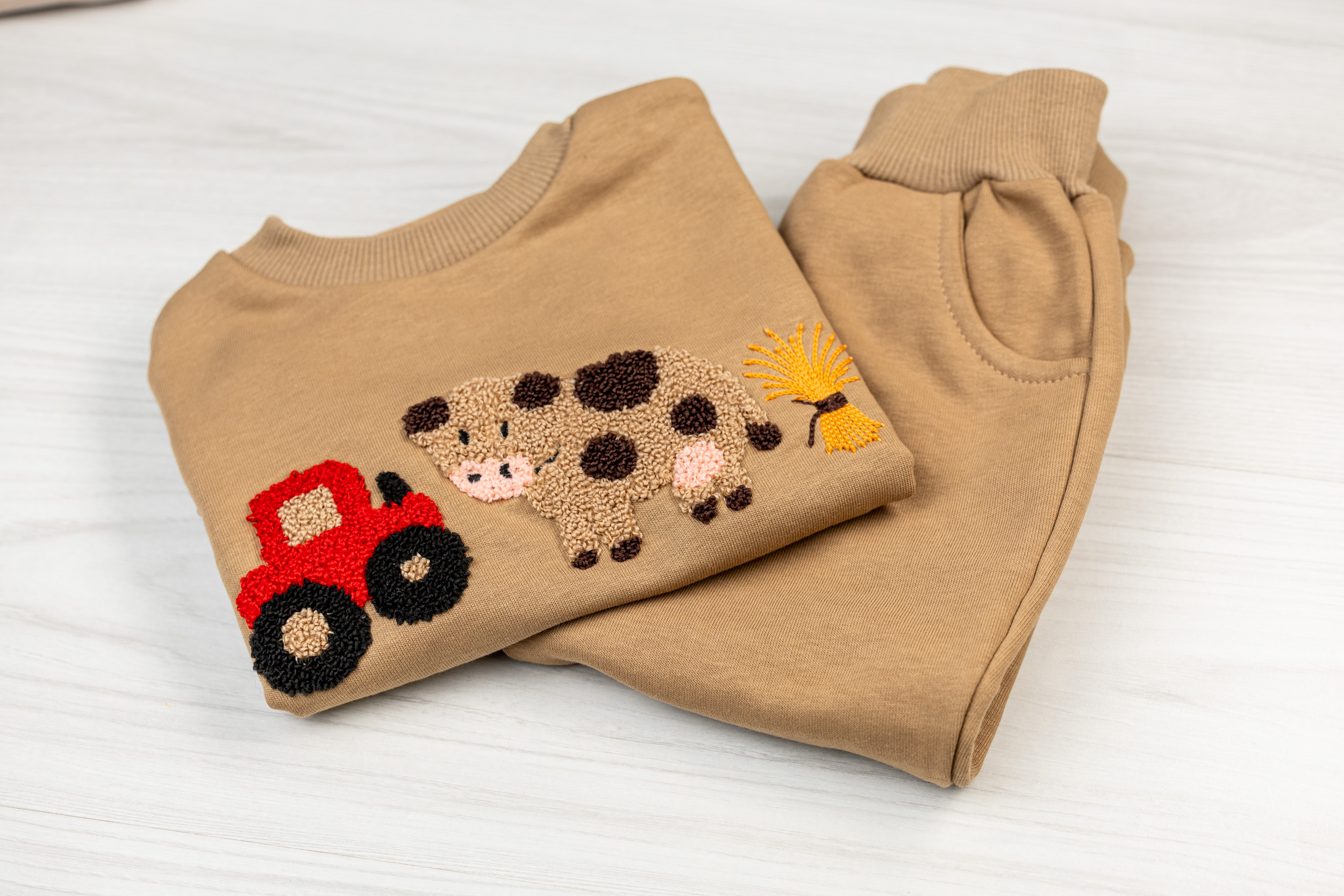Naša ‘Farm’ pamučna trenerka, dostupna u veličinama od 1 do 5 godina, izrađena je od najkvalitetnijeg pamuka. Ova trenerka pruža udobnost i toplinu i savršena je za svakodnevne aktivnosti vašeg deteta.